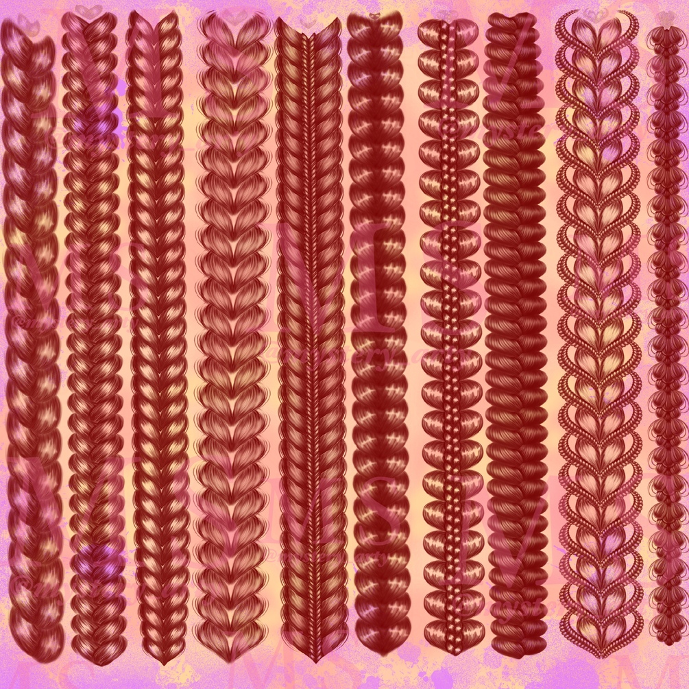 21 procreate brushes braids set with classic and decorative weaving will allow you to easily and quickly create beautiful and neat hairstyles in a couple of minutes and will help speed up the work several times